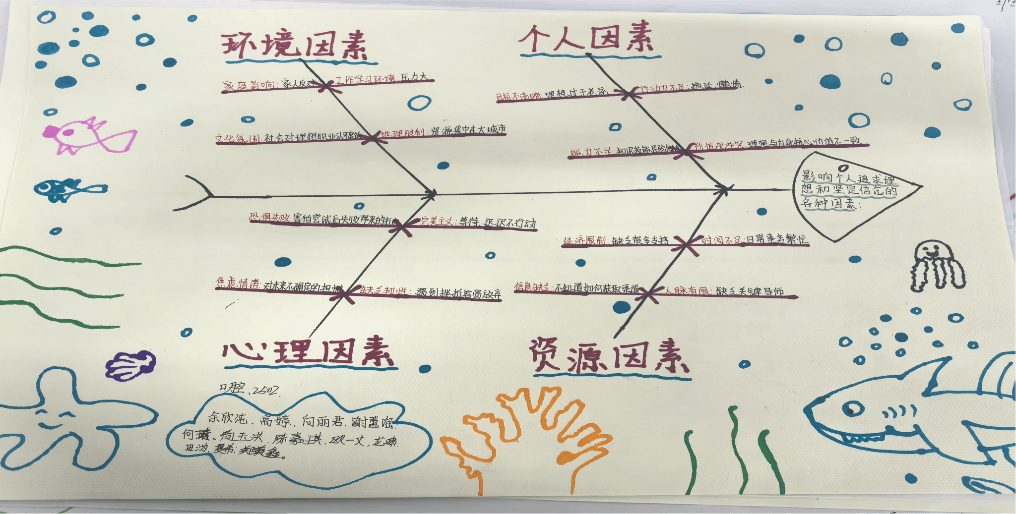 为深化思想道德与法治课程教学改革,将理论知识与实践探究深度融合,引导学生精准把握理想信念的核心要义与影响因素,近日,我院思想道德与法治课课堂上开展了一场别开生面的课内实践活动——理想信念影响因素鱼骨图绘制大赛。同学们以小组为单位,化身“理论研究员”,在思维的碰撞中勾勒理想信念的成长脉络,让课堂学习焕发新活力。